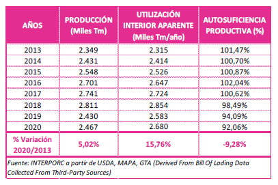 Producción, consumo y autoabastecimiento de carne y productos del porcino