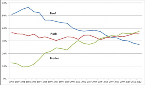 Hace algún tiempo, en los EE.UU., realizaron una de las campañas publicitarias más catastróficas de todos los tiempos: «Cerdo: la otra carne blanca». Lo cual en 30 años no ha lograda nada en términos de un mayor porcentaje de carne de cerdo en la dieta. Al mismo tiempo, el pollo ha aumentado casi 4 veces, del 10% al 40%.