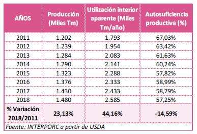 Producción, consumo y autoabastecimiento de carne y productos del porcino