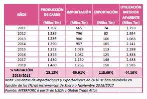 El mercado mexicano de carne y elaborados de porcino ha crecido de manera muy significativa en los últimos 8 años (un 44,17% entre 2011 y 2018), para lo cual ha contado con un significativo incremento de la producción propia (un 23,13%) pero que no ha sido suficiente para atender tan importante incremento de la demanda doméstica (que ya habría alcanzado los 21Kgs/Hab./Año en 2018), lo cual ha exigido un fuerte crecimiento de las importaciones (un 89,92% entre 2011 y 2018); y todo parece indicar que estas circunstancias de mercado no solo se mantendrán en los próximos años, sino que se incrementarán.