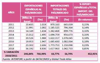 Estructura de las exportaciones españolas por productos al pais/mercado