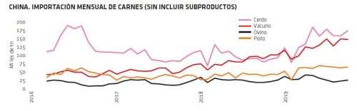 Y, en China, la carne ha tocado techo en este mes de noviembre, porque sale más stock de congelado a la venta ante la presión del gobierno y porque las masivas importaciones llevadas a cabo aseguran puntualmente el suministro hasta el Año Nuevo asiático el 25 de enero.