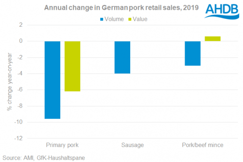 Mientras tanto, la demanda de los consumidores dentro de la UE ha sido moderada. En Alemania, los volúmenes de ventas minoristas de carne de cerdo fueron un 10% más bajos que en 2018, el año pasado. Esto se debe en parte al verano extremadamente caluroso que reduce la demanda de la carne para barbacoa. Sin embargo, los informes también sugieren que ha habido una creciente crítica al consumo de carne, y los sustitutos de la carne son cada vez más populares. Una población que envejece y se preocupa por la salud, y un aumento en la comida, también puede haber afectado negativamente las ventas minoristas.