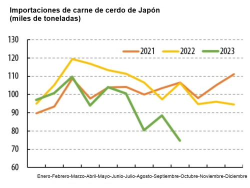 En 2023, Japón y Corea del Sur se vieron gravemente afectados por la inflación. En alimentación, en el 3º trimestre, los precios al consumo aumentaron un 9,4% en Japón respecto a 2022 y un 4,5% en Corea del Sur. Este clima económico incierto ha pesado sobre la demanda de los consumidores, particularmente en el segmento de restauración fuera del hogar, un sector que requiere productos importados. En este contexto, las importaciones de productos porcinos durante los primeros 8 meses del año cayeron un 12,5% respecto al año pasado para Japón y un 14,1% para Corea del Sur. En estos 2 mercados, los europeos fueron los más castigados por el debilitamiento de las compras. Por el contrario, los exportadores brasileños, que antes estaban muy poco presentes en estos países asiáticos, han ganado participación de mercado, donde la demanda de productos más sofisticados es más fuerte que en China.