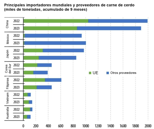 Además de la débil demanda china este año para los exportadores europeos, también se enfrentan a un debilitamiento de las ventas a otros mercados de Asia, que exigen productos porcinos más elaborados y con mayor valor añadido.