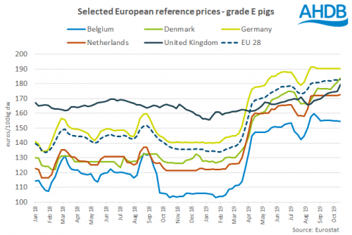 En las últimas 4 semanas, hasta el 20 de octubre, los precios de los cerdos de la UE mostraron una especie de mezcla de precios nacionales, aunque en promedio continuaron aumentando.