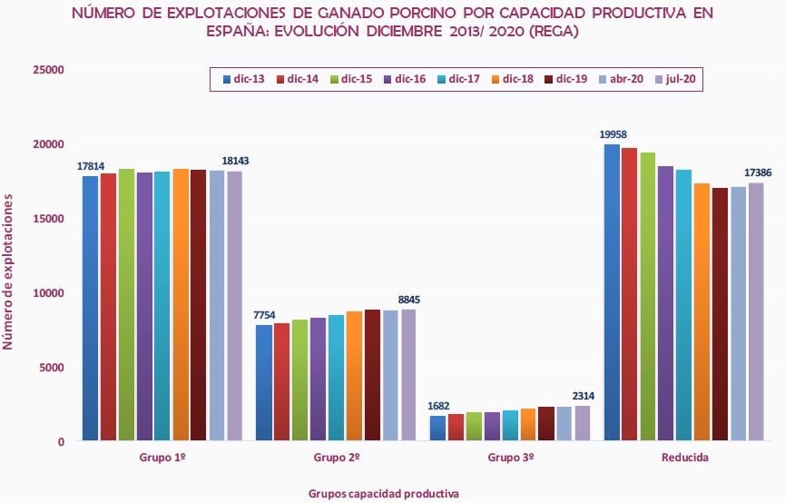 - Nº explotaciones: Evolución negativa del -1,70% desde el mes de diciembre del ejercicio de 2013, respecto al mes de julio de 2020.