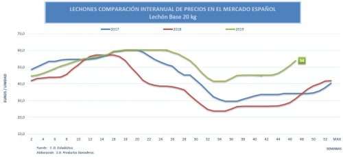 Los precios del lechón se mantienen en tendencia alcista en el mercado español y en la mayor parte de los mercados europeos y en valores muy altos, debido a la ausencia de descenso estacional del cebado por el mantenimiento de una demanda internacional fuerte, fundamentalmente de China.