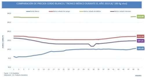 El diferencial de precios entre el cerdo blanco y el ibérico se reduce de nuevo esta semana. Esto se debe a un incremento del precio del cerdo blanco frente a la estabilidad de las cotizaciones del ibérico. Aún así, esta cifra se mantiene en niveles bajos, en comparación con los primeros meses del año, por la tendencia alcista de precios del cerdo blanco y los bajos precios del ibérico de cebo mantenidos a lo largo del mismo.