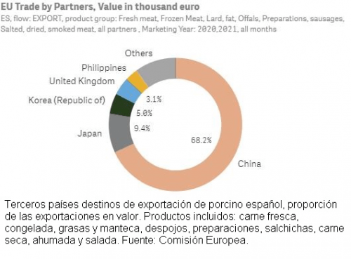 Unión de Uniones de Agricultores y Ganaderos, ante el pronóstico de reducción de la producción de porcino en China vaticinado por un estudio de Estados Unidos así como los efectos de la Peste Porcina Africana (PPA) en el país considera que el gigante asiático seguirá siendo principal destino de la carne de cerdo española, pero insta a buscar nuevos mercados para no llegar a una situación de dependencia.